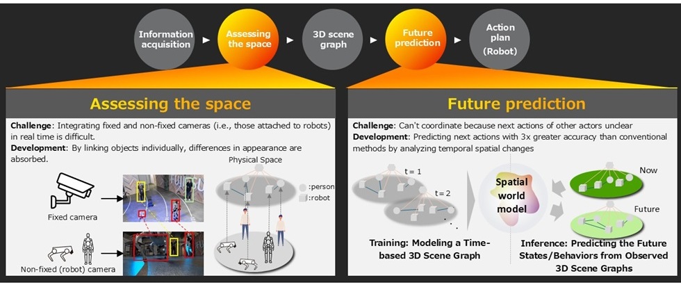 For humans and robots to be able to work together smoothly, robots have to be able to understand the intentions behind human actions and predict how they will behave in the future. World model technologies that enable robots to predict changes and act in their immediate surroundings are being widely researched, but so far they have been limited to modeling only the immediate environment and have not yet been able to grasp the dynamic changes throughout an entire space.