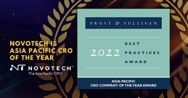 Novotech this month was awarded the Frost & Sullivan Company of the Year Award 2022 for Best Practices in the Asia-Pacific contract research organization industry. Novotech has been a recipient of the Frost & Sullivan Asia Pacific Best Practices awards since 2006. Frost & Sullivan identifies companies that consistently develop growth strategies based on a visionary understanding of the future, and effectively address new challenges and opportunities.