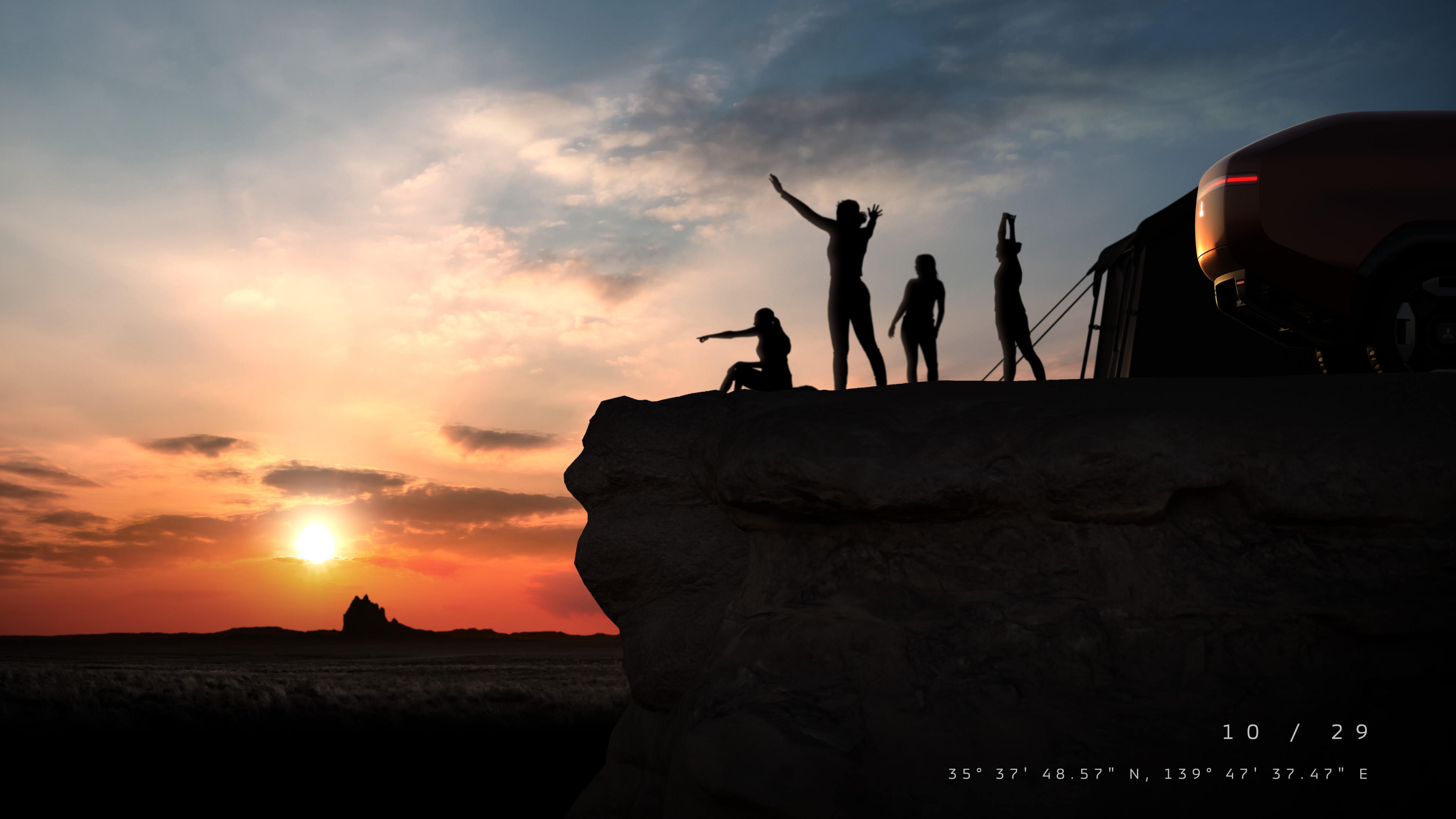 The featured concept car is an electrified crossover SUV designed to elevate quality time spent inside the vehicle. Its smooth, seamless styling blends urban sophistication with SUV strength, while the spacious interior offers a luxurious in-car sleeping environment that turns any destination into a glamping retreat.