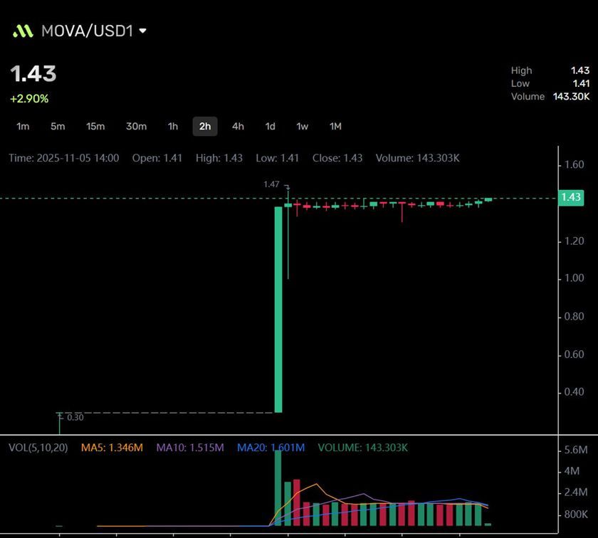 ABU DHABI, UAE, 2025年11月6日 - (JCN Newswire) - 2025年11月、MOVAはネイティブトークンの正式上場と取引開始を発表し、ネットワークが市場流通およびエコシステム自律段階へ移行したことを示しました。同時に、MOVA公チェーン上のネイティブ派生プロトコルMOVA Liquidも正式稼働し、初の取引ペアMOVA/USD1は24時間で取引高300万ドルを突破、最大370%の上昇を記録。今四半期のDeFi分野で最も注目を集めるプロジェクトの一つとなりました。
