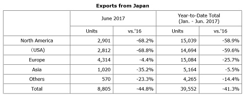 Total domestic automobile sales in the Japanese market for the month of June 2017 experienced a year-on-year decrease for the second consecutive month (since May 2017).