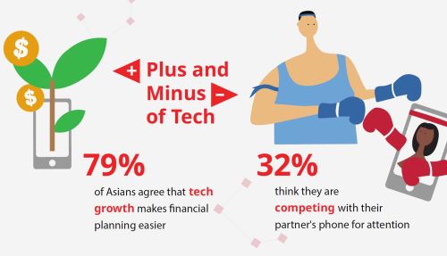- However, more than half of Asians worry about their families' financial security; - While time spent on digital devices is a major for arguments between couples, the majority of Asians believe tech advancement has improved financial planning