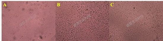 Cell viability in COVID-19 sensitivity experiment - A: The cell control group, B: The virus control group, C: The drug test group *LeSoleil Concentration = 114.8 nM