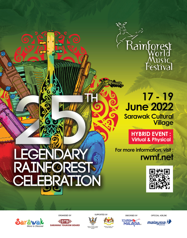 This year, the music festival themed "Legendary Rainforest Celebration" being held from 17-19 June 2022 will take on a hybrid format, with the physical concert taking place at Sarawak Cultural Village while viewers can also livestream it from their homes via rwmf.net.